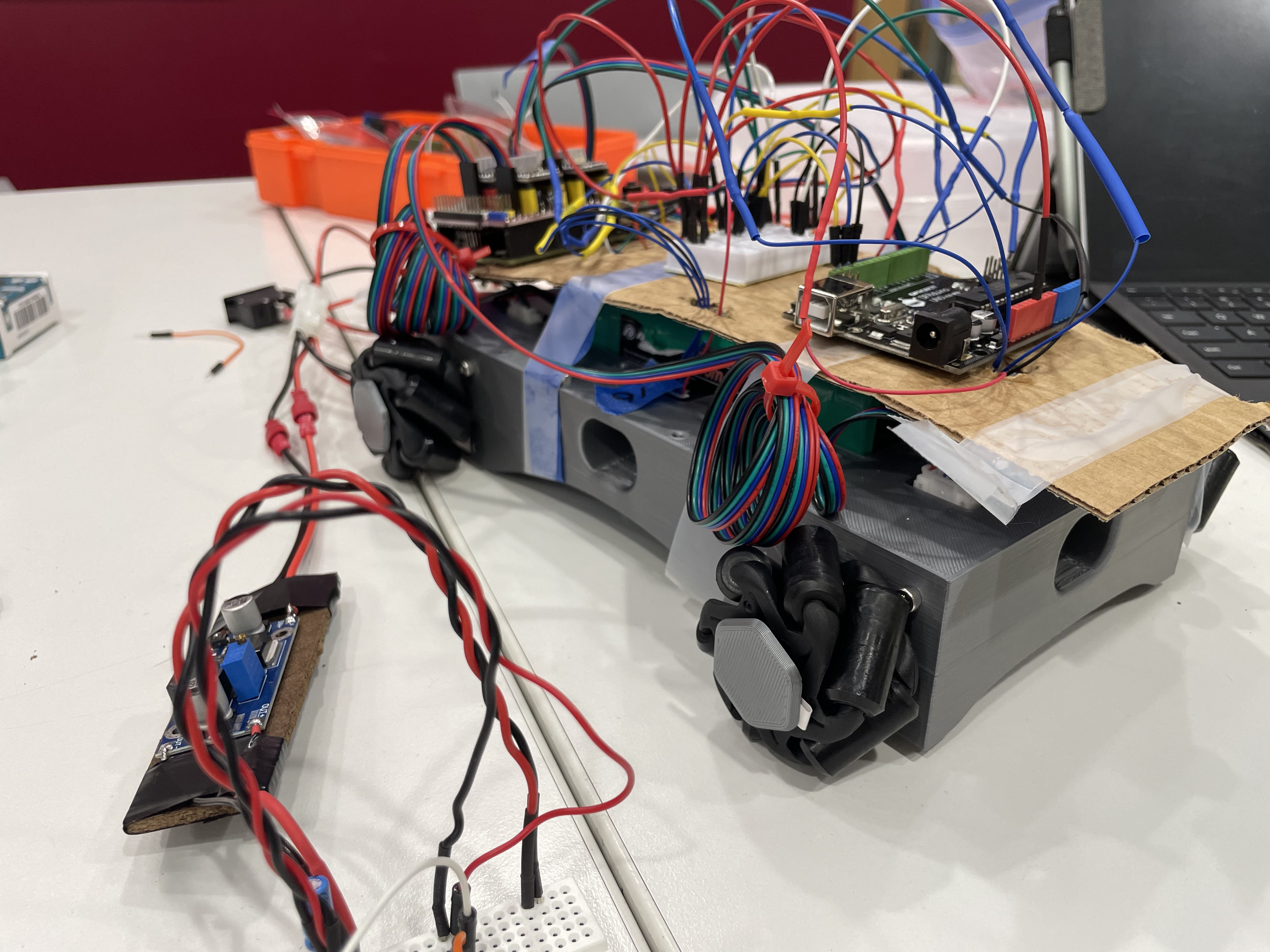 Code covers the software requirements which arise from a two-Arduino configuration, as well as a general overview of the multi-phase control strategy used in the game. Of special focus is the inter-computer communication strategy employed to reduce single-microcontroller computational load and the modular components used to construct the state machine in code.